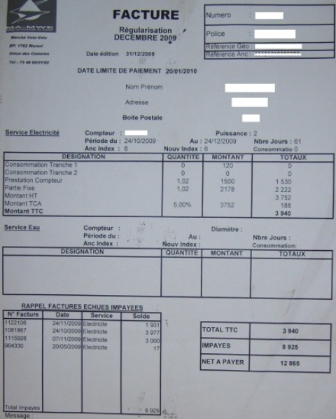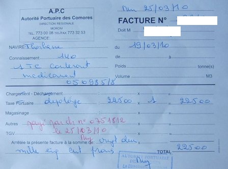 Formulaire incluant la liste des produits (matériels, équipement, pièces)